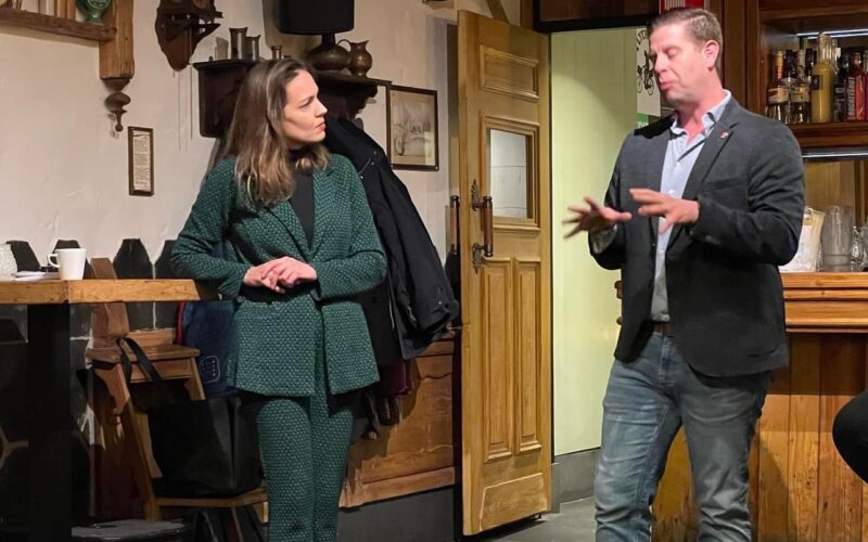 Onder de noemer ‘Ask us anything’ beantwoordden de VVD-Tweede Kamerkandidaten Bente Becker en Berend Aptroot alle vragen over actuele politieke thema’s. Een politiek café in z’n puurste vorm: in natuurlijk een echt café (The Old Pal) en op een laagdrempelige, ontspannen wijze en onder het genot van een drankje stelden ongeveer 25 belangstellenden hun vragen aan beide politici. Het was de tweede keer binnen één week dat de nummer 3 op de VVD-kandidatenlijst haar opwachting in Zoetermeer maakte. Zaterdag jl. was zij aanwezig in het regenachtige Stadshart om daar met de inwoners van Zoetermeer in gesprek te gaan.